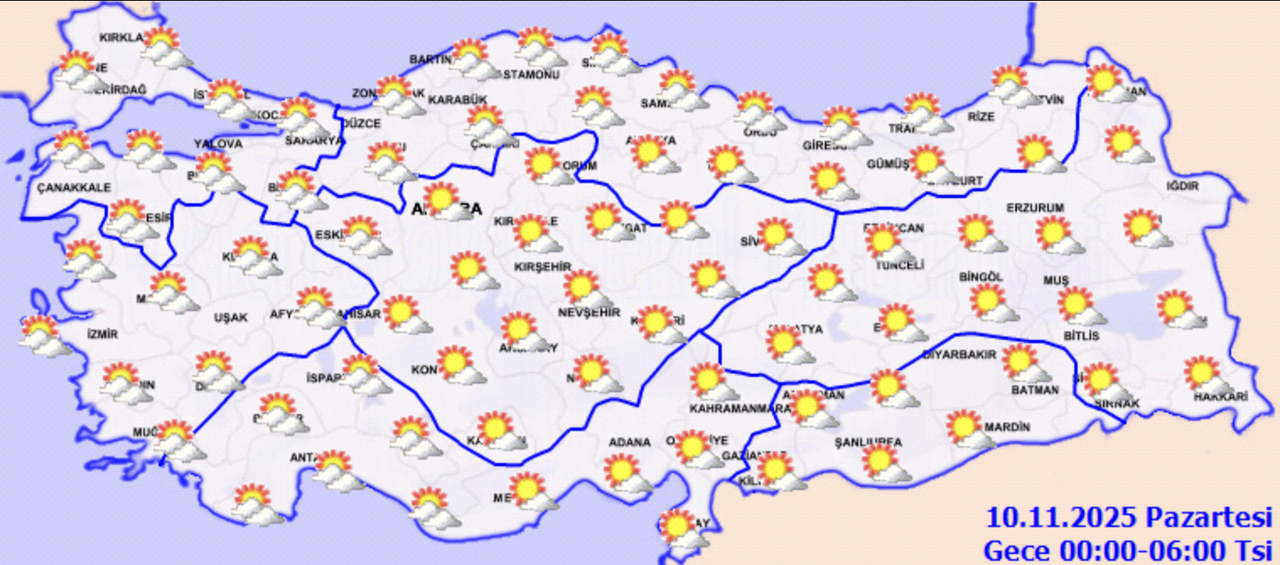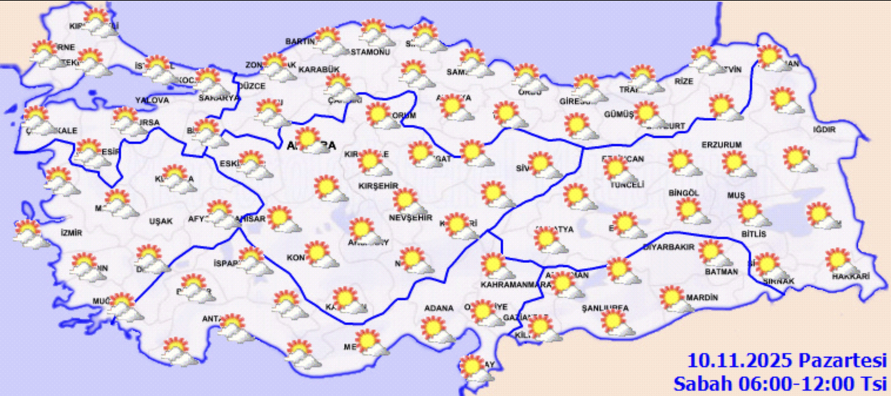 Sabah saatlerinde iç kesimlerde sis etkili olabilir.