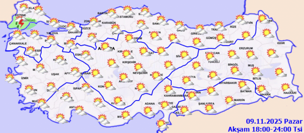 Genel olarak parçalı bulutlu, yağış beklenmiyor.