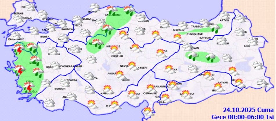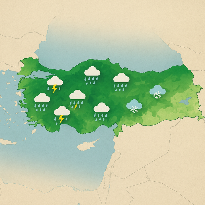 Parçalı ve çok bulutlu, genel olarak sağanak ve gök gürültülü sağanak yağışlı.