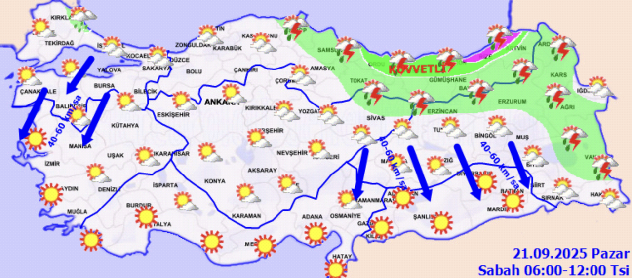 Aralıklı sağanak ve gök gürültülü sağanak. Ordu, Rize, Artvin çevrelerinde yağışlar kuvvetli.