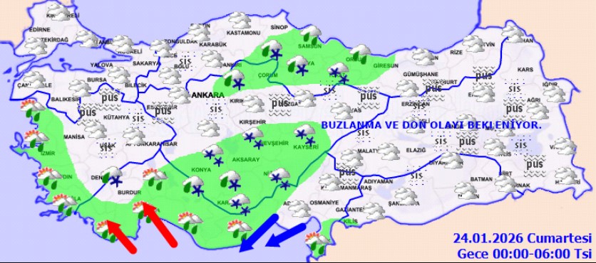 Kuzey, iç ve batı kesimlerde hava sıcaklıklarının artması beklenirken, diğer bölgelerde mevsim normalleri devam edecek. Ancak sıcaklık artışına rağmen gece ve sabah saatlerinde buzlanma, don ve sis olaylarına karşı dikkatli olunması gerekiyor.