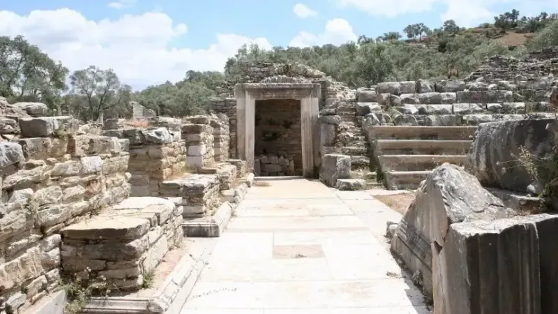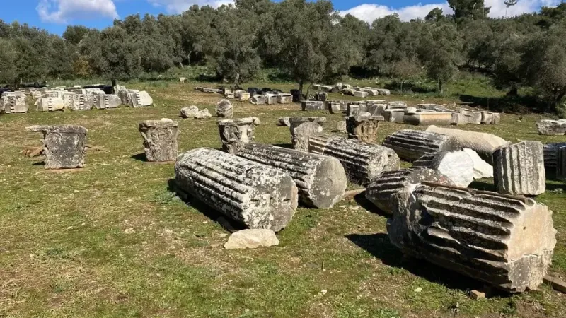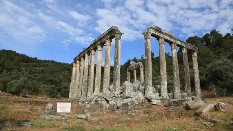 Euromos'un en dikkat çekici yapılarından biri olan Zeus Tapınağı, Milas ile Bafa Gölü arasında konumlanmıştır. M.Ö. 2. yüzyılda inşa edilen tapınak, hala ayakta duran 17 sütunuyla ziyaretçilerini etkilemektedir. Güney ve güneybatı köşelerinde bulunan yivleri açılmamış üç sütun, tapınağın tamamlanamadığını gösteren önemli bir kanıttır. Ayrıca, Helenistik dönemden kalma bir kitabe, tapınağın önceki bir yapı üzerine inşa edildiğini ortaya koymaktadır.