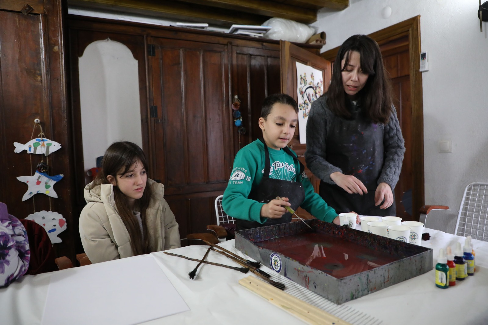 Gözcüler Evi’nde düzenlenen ebru atölyesine katılan 10 yaşındaki Hüseyin Can Konya, ara tatil döneminde düzenlenen etkinliklerin kendisini mutlu ettiğini belirterek, “Evde canımız sıkılmıyor, burada arkadaşlar ediniyoruz ve eğlenceli vakit geçiriyoruz.” dedi.