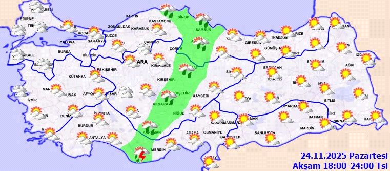 Zamanla bulutlanma artacak. Samsun, Amasya ve Çorum çevreleri yağış alacak.