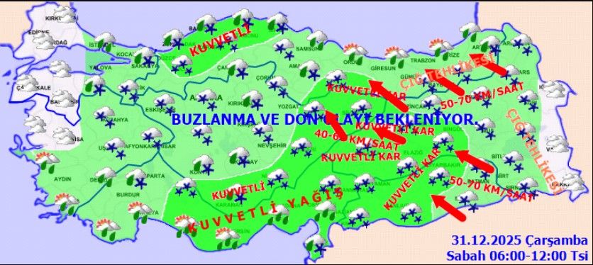 Yağışlar kıyı şeridinde sağanak, iç kesimlerde ise karla karışık yağmur ve yoğun kar şeklinde görülecek. Özellikle kuzey, iç ve doğu bölgelerde görülecek buzlanma ve don olayı sürücülerin ve yayaların en büyük kabusu olabilir.