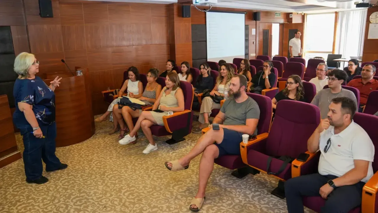 FTSO Likya Salonu’nda 26 Eylül 2025 Cuma günü gerçekleştirilen eğitimde, farklı sektörlerden yönetici ve çalışanlar yer aldı. Eğitmen Banu Bingöl Akın tarafından verilen eğitimde, çalışma hayatını etkileyen megatrendler, yeni yetkinlikler, kuşakların beklentileri ve uyum önerileri, işe alım yöntemleri, dijital trendlerin iş dünyasına etkisi ve yeni nesil müşteri-çalışan ilişkileri konu başlıkları ele alındı.