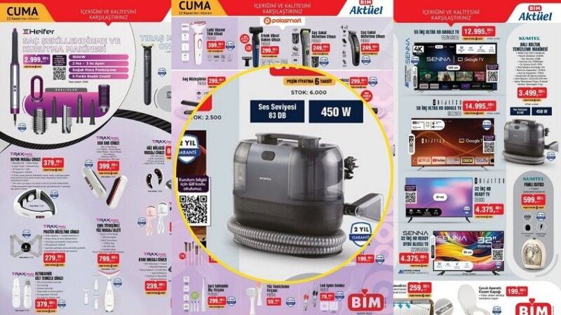 BİM, 22 Kasım 2024 tarihli aktüel ürünler kataloğunu yayınladı ve bu hafta çok konuşulacak ürünler raflarda yerini alıyor. Özellikle halı ve koltuk yıkama makinesi, uygun fiyatıyla dikkat çeken ürünlerin başında geliyor. İşte, herkesin ilgisini çekecek BİM’in yeni indirim listesi...