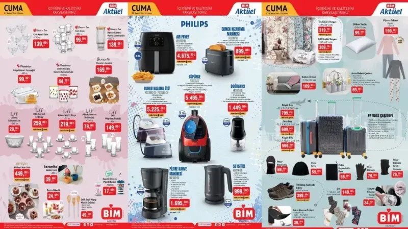 Her hafta Salı ve Cuma günleri özel indirimleriyle müşterilerini memnun eden BİM, 22 Kasım 2024 aktüel ürünler kataloğunda da herkesin bütçesine uygun ürünler sunuyor. Ev ihtiyaçlarından elektronik ürünlere, kişisel bakımdan ısıtıcılara kadar birçok kategoride fırsatlar BİM raflarında sizleri bekliyor.