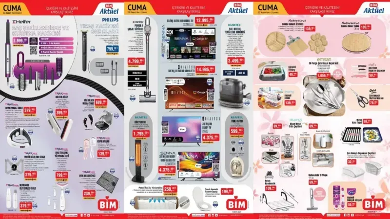 Bu hafta kişisel bakım ürünleri de BİM’in kataloğunda öne çıkıyor. Saç şekillendirme cihazlarından cilt bakım ekipmanlarına kadar pek çok ürün, uygun fiyatlarla satışa sunuluyor: