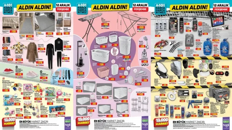 A101, her dönem sunduğu cazip fiyatlarla dikkat çekerken, bu katalogda teknoloji tutkunlarından ev düzenine kadar pek çok ihtiyaca hitap eden fırsatlar sunuyor. Elektronik cihazlardan mutfak gereçlerine, ev eşyalarından araç gereçlerine kadar birçok ürün, uygun fiyatlarla tüketicilerle buluşacak.