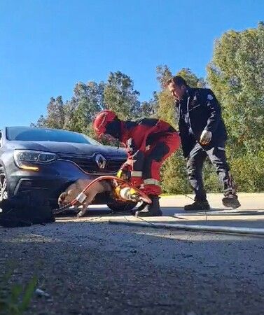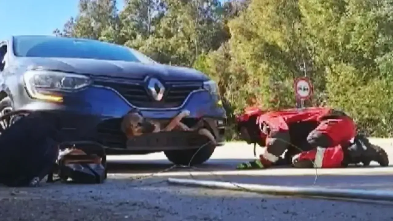 Fethiye itfaiye grup amirliği ekipleri tarafından ön tampona sıkışan köpek sıkıştığı yerden kurtarılmasının ardından doğal yaşam alanına döndü. Tampona sıkışan köpeğin sağlık durumunun iyi olduğu öğrenildi.