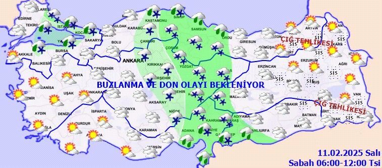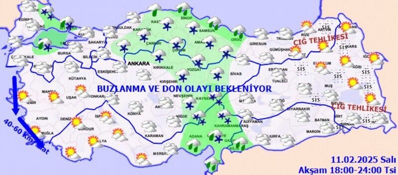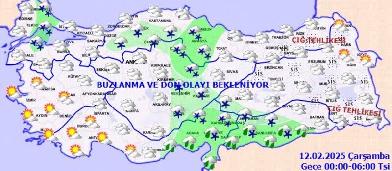 Doğu Karadeniz’in iç kesimlerinin yüksekleri ile Doğu Anadolu'nun doğusunun dik ve eğimli yamaçlarında çığ tehlikesi ile yurdun iç ve doğu kesimlerinde yer yer kuvvetli olmak üzere buzlanma ve don olayı beklendiğinden meydana gelebilecek olumsuzluklara karşı dikkatli ve tedbirli olunması gerekmektedir.