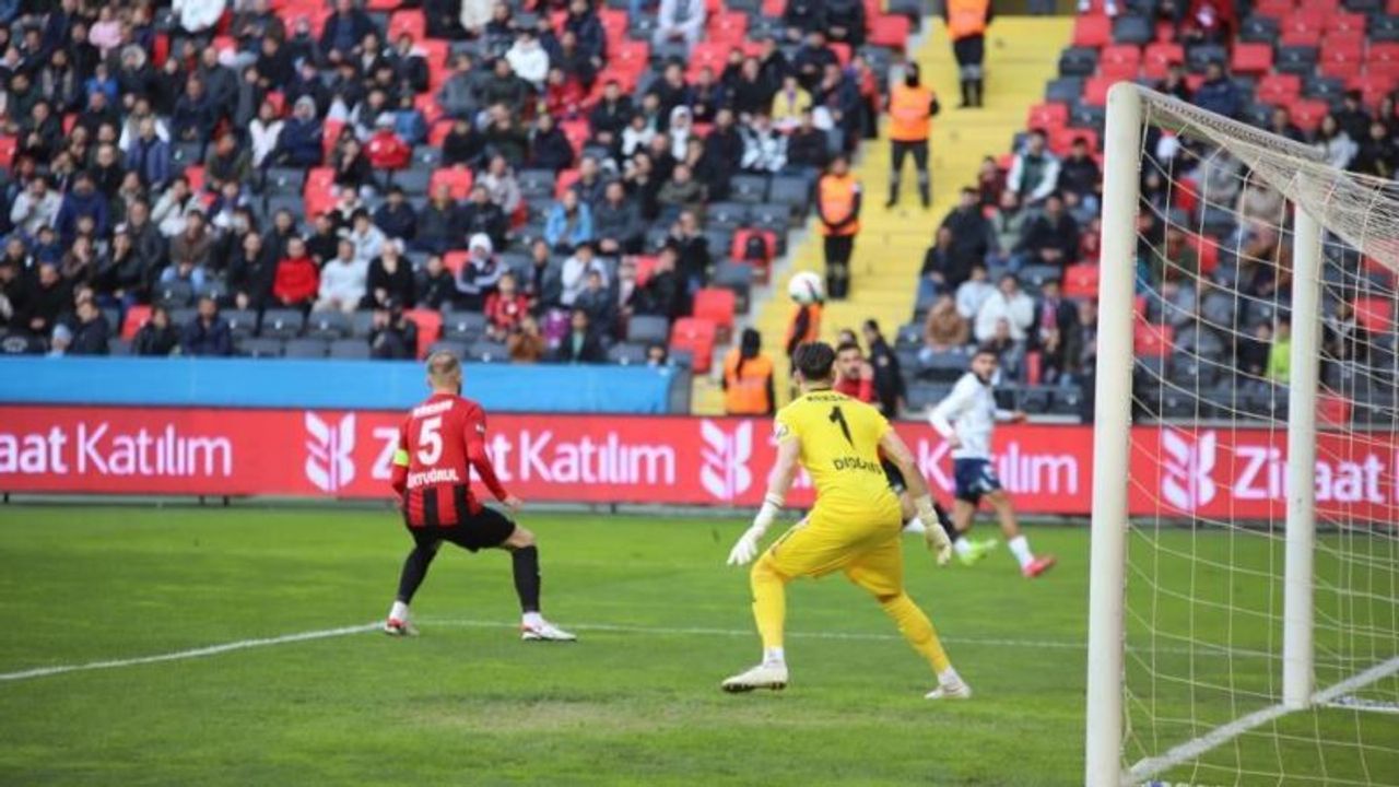 9. dakikada ani gelişen Gaziantep atağında sağ kanattan ceza sahasına giren Sorescu’nun topu sola çekip yaptığı vuruşta meşin yuvarlak üstten auta çıktı.