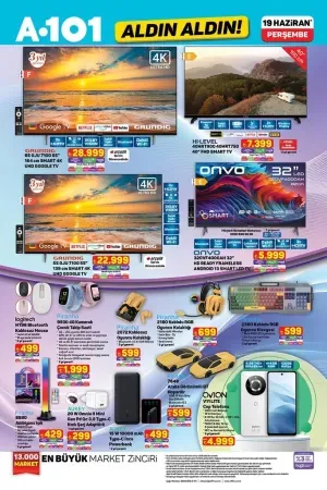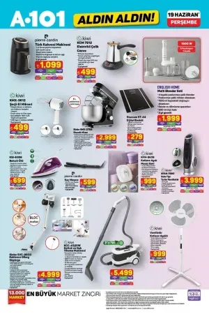 Türkiye’nin önde gelen perakende zincirlerinden A101, 19 Haziran 2025 Perşembe günü itibarıyla dopdolu bir aktüel ürün kampanyasına daha imza atıyor. Bu haftaki katalogda; VOLTA VT5 elektrikli moped, katlanabilir OLE EFL2 bisiklet ve benzinli REVOOLT RT3 motosiklet gibi dikkat çekici ulaşım araçlarının yanı sıra, beyaz eşyadan televizyonlara, mutfak aletlerinden kamp ekipmanlarına kadar yüzlerce üründe indirimli fiyatlar sunuluyor. Üstelik birçok üründe taksitli ödeme ve ücretsiz teslimat avantajı da mevcut. İşte tüm detaylarıyla A101 19 Haziran aktüel ürünler listesi...
