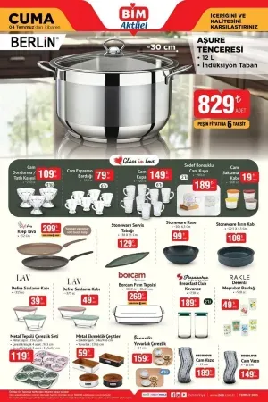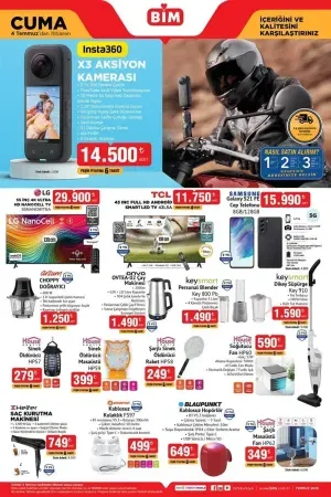 BİM, 1 Temmuz Salı ve 4 Temmuz Cuma günleri için hazırladığı yeni aktüel ürün kataloğunu duyurdu. Geniş yelpazedeki bu katalogda; mutfaktan teknolojiye, ev tekstilinden temizlik ürünlerine kadar pek çok ihtiyaca yönelik ürün dikkat çekiyor.