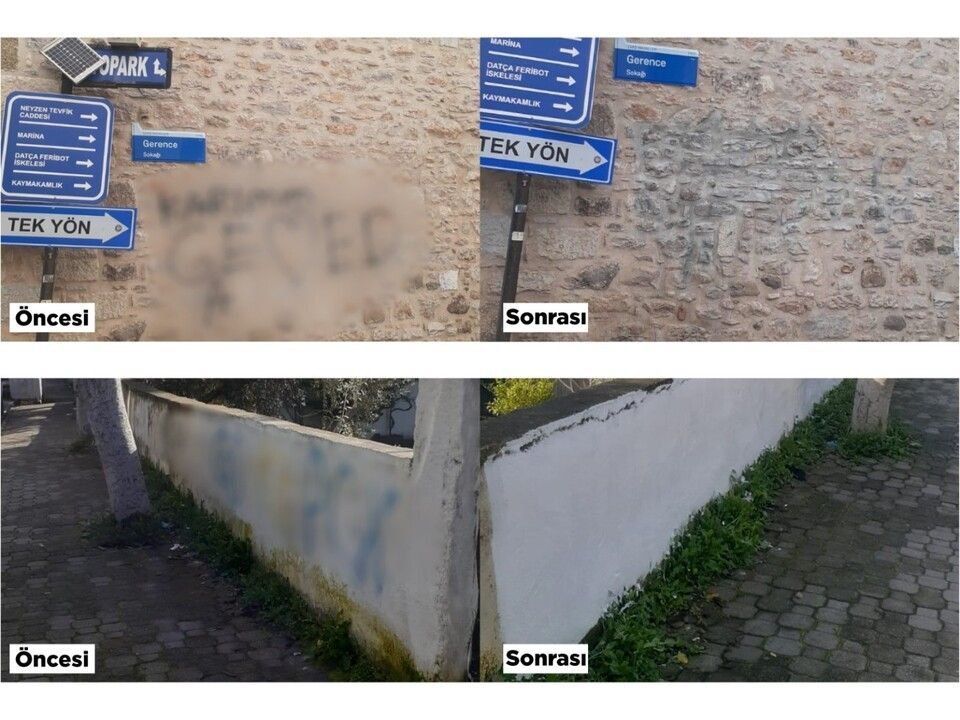 Muğla'nın Bodrum ilçesinde çevre düzeni ve estetik görünümün korunması amacıyla yapılan çalışmalar kapsamında son 6 ayda 29 duvar yazısı silindi.