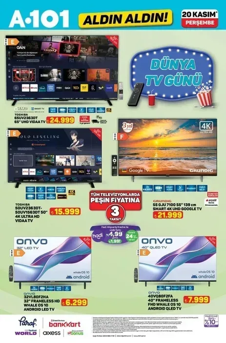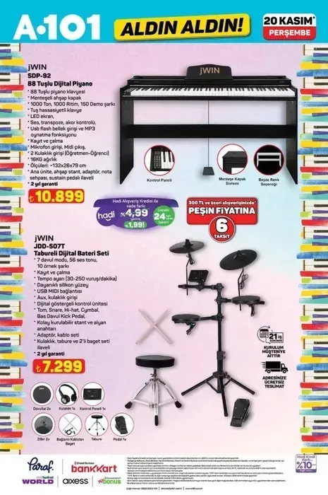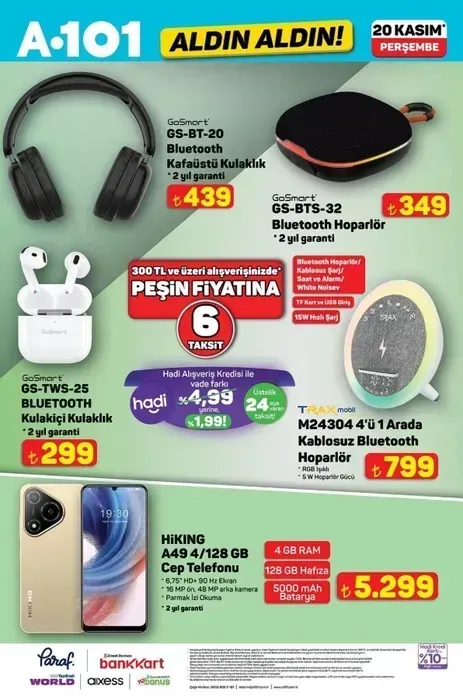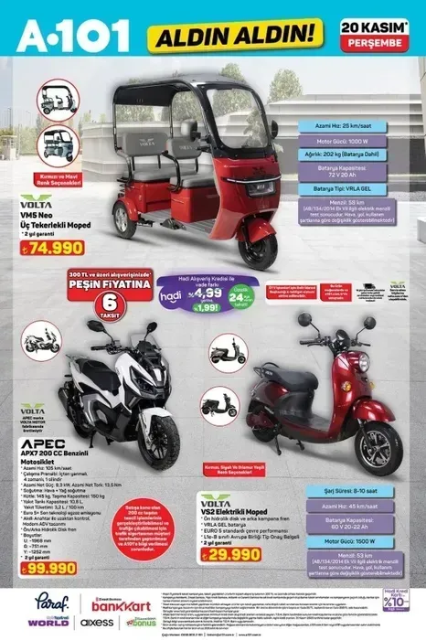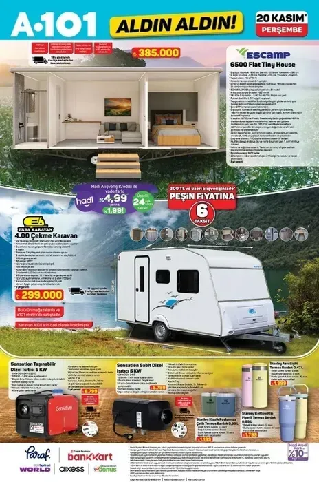 A101’in 20 Kasım 2025 Perşembe aktüel ürünler kataloğu yayımlandı. Bu hafta teknoloji ürünlerinden beyaz eşyaya, motosiklet ve elektrikli mopedlerden tiny house ve karavana kadar dikkat çeken birçok ürün satışa çıkıyor. Mutfak gereçleri, oyuncaklar, giyim ve temel tüketim ürünleri de katalogda yerini aldı.