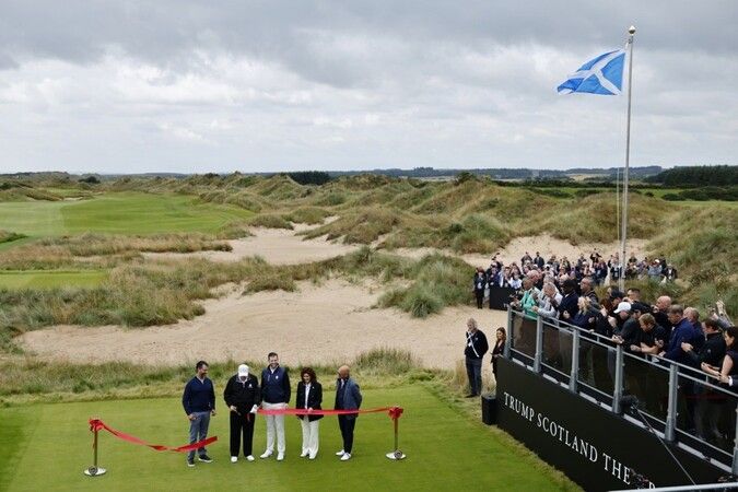 ABD Başkanı Donald Trump, özel bir ziyaret kapsamında dört gündür bulunduğu İskoçya'da ziyaretinin son gününde kendisine ait yeni golf tesisinin açılışını gerçekleştirdi. Tesisin açılışı sırasında Trump'a eşlik eden İskoçya Başbakanı John Swinney, açılış öncesinde Trump ile özel bir görüşme gerçekleştirdi. Görüşmede, ABD tarafından İskoç viskisine uygulanan yüzde 10'lük gümrük vergisi ile Gazze'de yaşanan açlık krizi nedeniyle yapılacak insani yardım konuları konuşulduğu bildirildi. Görüşmenin ardından golf tesisinin açılışını gerçekleştirmek için kameralar karşısına geçen Trump açıklama yaptı. John Swinney'e teşekkür ederek ve yeni golf tesisinin harika olduğunu söyleyerek sözlerine başlayan Donald Trump, "Bugün özel bir gün olacak, bu yıl özel bir yıl olacak, bu 10 yıl özel bir on yıl olacak" dedi. Kalabalığa "İskoçya'yı seviyoruz" diyen Trump, bir basın mensubunun "İsrail Başbakanı Binyamin Netanyahu'ya ne söylemek istersiniz?" demesi üzerine "İşleri yoluna koymak için birlikte çalışıyoruz" ifadelerini kullandı.