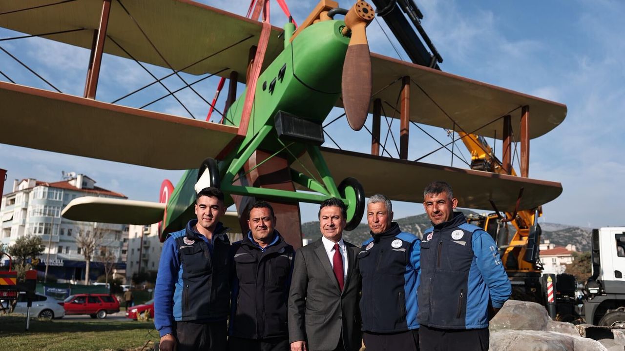 Fen İşleri Dairesi Başkanlığı ekipleri tarafından yürütülen çalışmalar kapsamında tayyare maketi bakım ve restorasyondan geçirilerek estetik ve yapısal olarak yenilendi. Ardından döner kavşağa yerleştirilen maket, yeniden Muğla’nın simgeleri arasındaki yerini aldı.