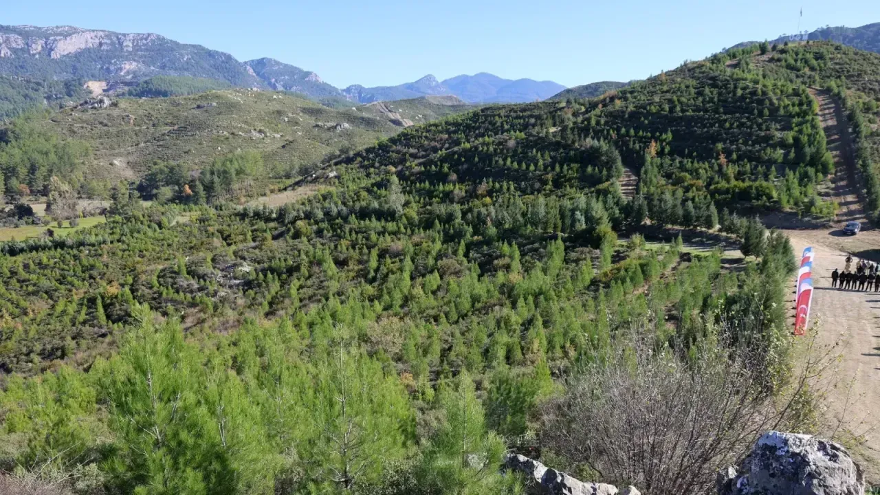 Yanan sahada fidanların ağaca dönüşmesini havadan helikopter ile gören Orman Genel Müdürü Bekir Karacabey, "Burası içinde bulunduğumuz saha maalesef 10 Temmuz 2019 gününde bir yangına maruz kalmış ve o zaman için hepimizi üzüntüye boğan bir sahaydı. Burası tekrar, o zaman ifade ettiğimiz gibi tekrar yeşil dokusuna, yeşil örtüsüne kavuştu. Tabii bu arada kayıp olan şey sadece yıllar değildi, bu yeşilliğin kaybolmasıyla ilgili birçok ağacımızla birlikte bu alanda bulunan birçok canlı, gördüğümüz görmediğimiz birçok canlı da hayatını kaybetmişti. Biz yanan alanlarımızın, yanan orman alanlarımızın tamamını tek bir metre karesi istisna olmaksızın yeniden ağaçlandırıyoruz, yeniden ormanlaştırıyoruz. İşte onun örneklerinden bir tanesini de burada hep birlikte şahit oluyoruz. 2019 yılında hemen 11 Kasım'ına geldiğimizde biliyorsunuz Milli Ağaçlandırma Günü 2019 yılında ilan edildi ve bizler burada 11 Kasım 2019 tarihinde Milli Ağaçlandırma Günü'nü kutlamak maksadıyla sahaya geldiğimizde sahanın tamamında arazi hazırlığı yapılmış, toprak işlemesi tamamlanmış, yeniden ağaçlandırmaya, yeniden fidan dikimine hazır hale getirmiştik. 450 bin fidan ve 35 ton tohumu da bu sahada toprakla buluşturarak şu anda hepimizi memnun eden görüntünün oluşmasını sağlamış olduk. Yanan alanlarda hemen ilk öncelikle sahadaki yanan ağaçları sahadan çıkardıktan sonra etüdünü yapıp, burada hangi usulle, hangi yöntemle tekrar ormanlaştırma çalışması yapacağımızı planladıktan sonra da en geç bir yıl içerisinde bu alanların tekrar ormanlaştırılmasıyla ilgili çalışmaları yürütüyoruz. Bugüne kadar ülkemizin hiçbir yanan alanın hiçbir metrekaresinde ormanlaştırma çalışmalarının dışında herhangi bir müdahale olmamıştır. Bunu tekrar tekrar ifade etmek istiyorum çünkü maalesef vatandaşlarımızın zihninde yanan alanların ormanın dışında maksatlarla kullanılacağıyla ilgili bir takım istifamlar, şüpheler oluşuyor. Bunu ortadan kaldırmış olmak adına tekrar ifade etmek istedim" dedi.