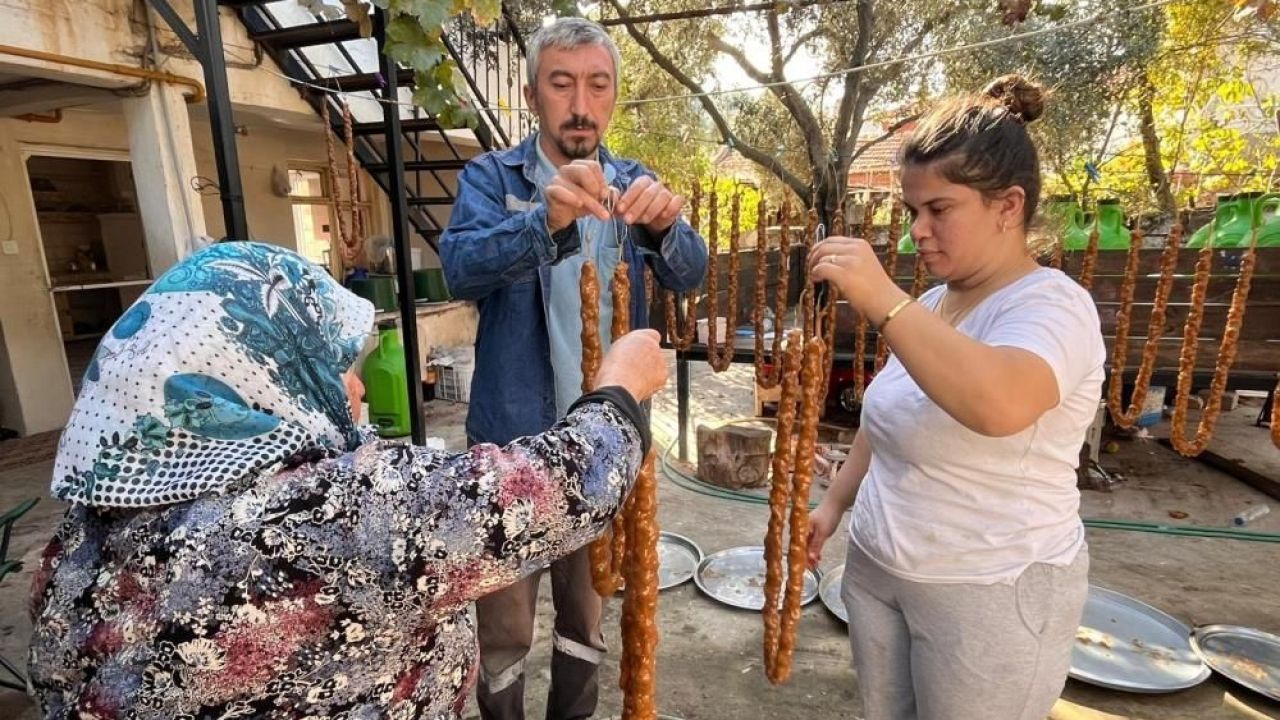 Cevizlerin tek tek ipe dizilmesiyle başlayan süreçte, hayıt balı, üzüm pekmezi ve buğday nişastasından hazırlanan karışım kazanlarda kaynatılıyor. Daha sonra cevizler, bu karışıma üç kez batırılarak kurutuluyor ve ortaya geleneksel yöntemlerle hazırlanan doğal cevizli sucuk çıkıyor.