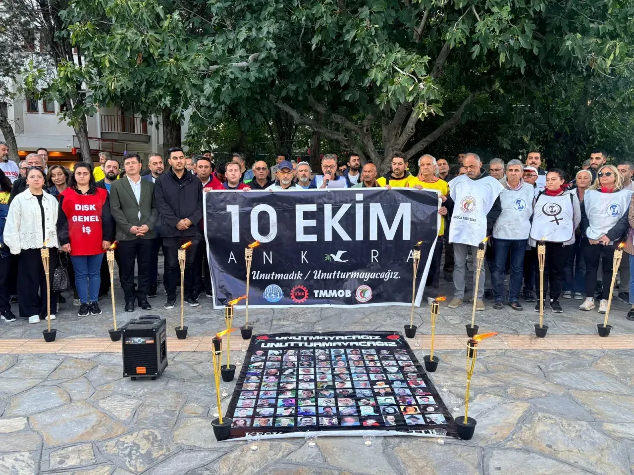 Ankara Tren Garı Meydanı'nda 10 Ekim 2015 tarihinde 103 kişinin hayatını kaybettiği IŞİD terör saldırısının üzerinden 10 yıl geçti. KESK Muğla Şubeler Platformu’da Menteşe İlçesindeki Sınırsızlık Meydanı’nda hayatını kaybeden vatandaşlar için anma töreni ve basın açıklaması düzenledi.