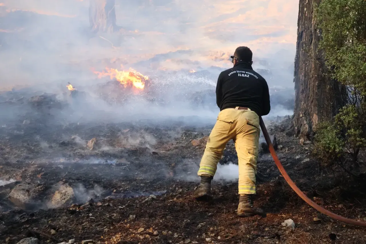 Yangının ikinci gününde rüzgarın etkisini sürdürdüğü bölgede, hem havadan hem karadan yoğun müdahale gerçekleştiriliyor. Ekipler, alevlerin daha fazla yayılmaması için aralıksız mücadele ediyor.