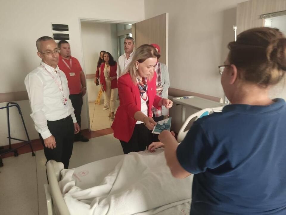 29 Ekim Cumhuriyet Bayramı haftası nedeniyle de Köyceğiz Devlet Hastanesi personellerinin hazırlamış olduğu ay yıldızlı bileklikler hediye edilerek bayramları kutlandı.