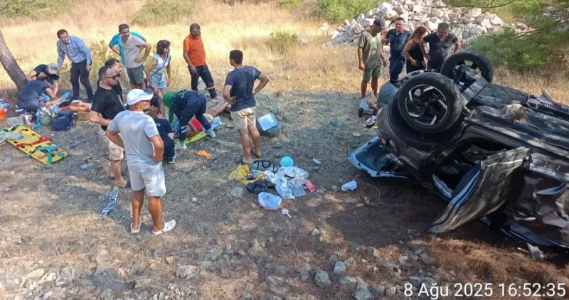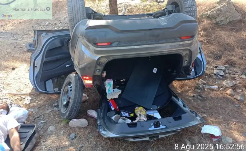 Kaza, Muğla'nın Marmaris ilçesi Datça Karayolu üzeri Hisarönü mevkiinde meydana geldi. Edinilen bilgiye göre, lastiği patlayan bir araç kontrolden çıkarak karşı şeritten gelen başka bir otomobile çarptı. Çarpışmanın etkisiyle araçlardan biri takla atarak refüjden aşağı düştü.