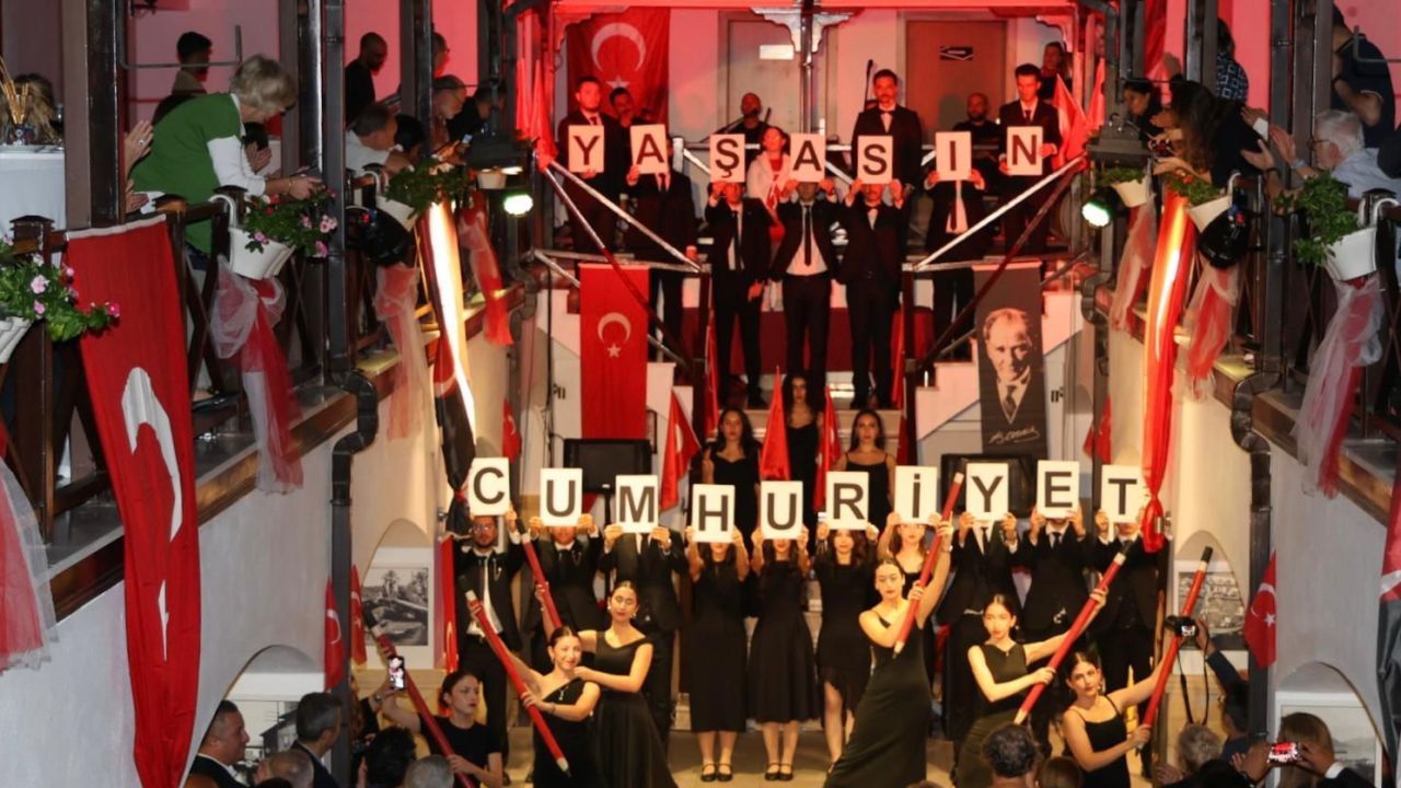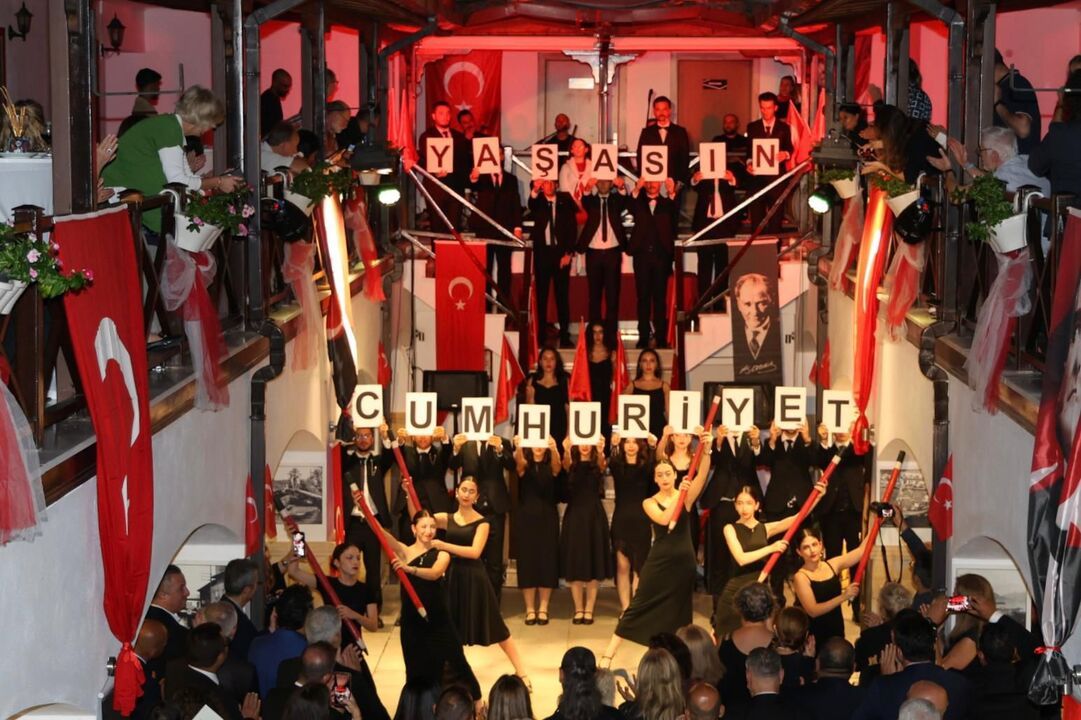 Marmaris Kültür ve Sanat Evi’nin öğretmenleri ve öğrencilerinin büyük katkı sunduğu geceye, Marmaris Belediye Başkanı Acar Ünlü, kardeş şehir Almanya’nın Fürth kentinden gelen konuklar ve çok sayıda davetli katıldı. Ankara Kültür ve Sanat Kulübü (AKSAK) oyuncularının sahne aldığı gösteride, özgürlük, eşitlik ve çağdaşlık temalı performanslar sergilendi. Cumhuriyet’in kuruluşunun dans ve müzikle anlatıldığı sahneler izleyicilerden büyük alkış aldı.