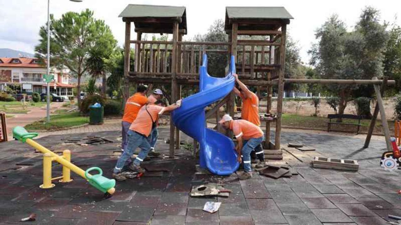 Marmaris Belediyesi Park ve Bahçeler Müdürlüğü tarafından eskiyen parklar yenileniyor.