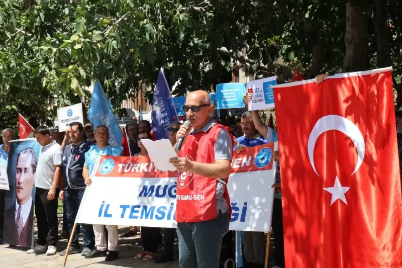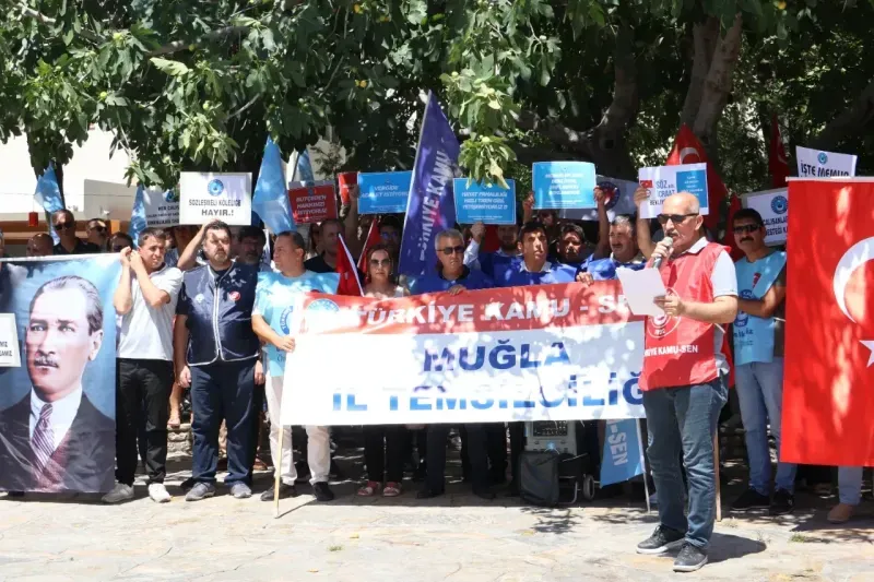 Türkiye Kamu-Sen Muğla Şubesi, 8. Dönem Toplu Sözleşme görüşmelerinde Kamu İşveren Heyeti’nin sunduğu zam teklifini reddederek adil ve hakkaniyetli bir artış talebiyle Sınırsızlık Meydanı’nda basın açıklaması yaptı.