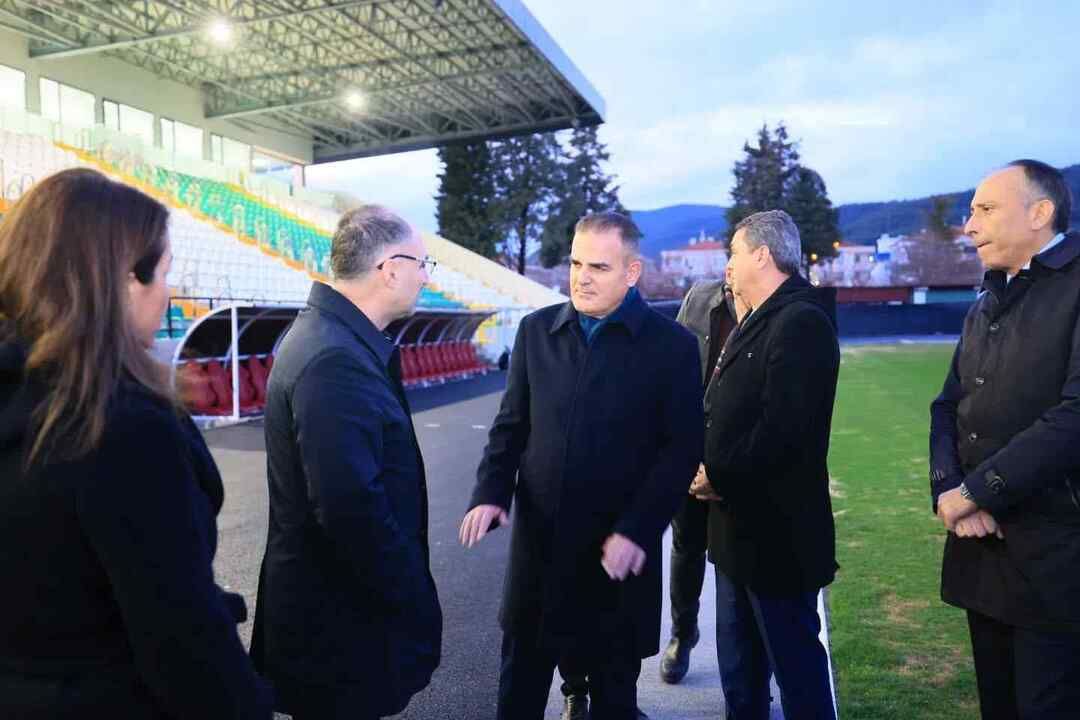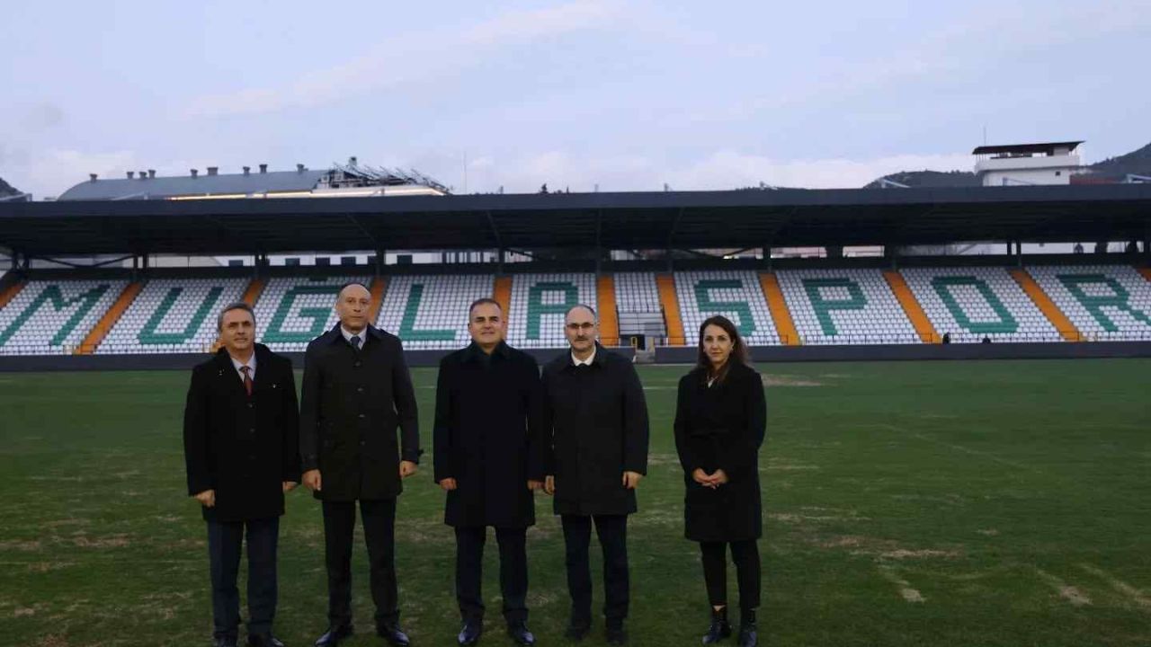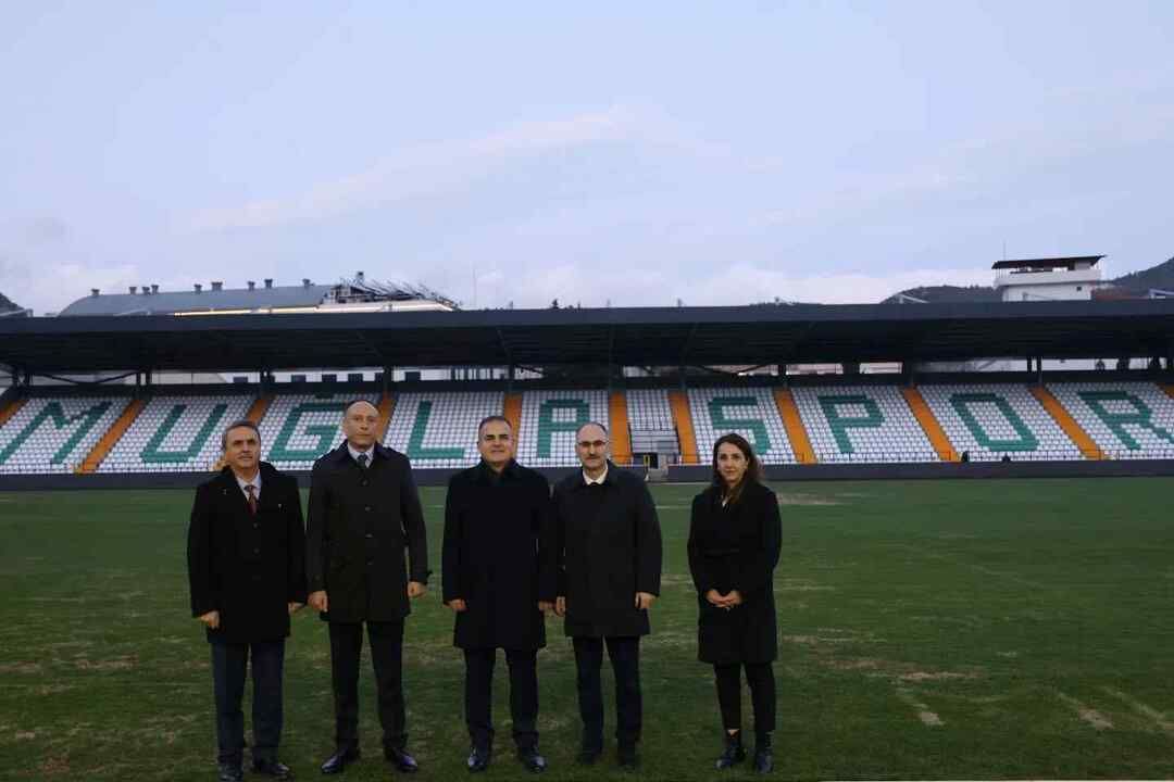 Muğla Valisi İdris Akbıyık, Gençlik ve Spor Bakanlığı Yatırım ve İşletmeler Genel Müdürü Süleyman Şahin, Vali Yardımcısı Murat Kahraman ve Gençlik ve Spor Muğla İl Müdürü Musa Kazım Açıkbaş ile birlikte Menteşe Atatürk Stadyumu’nda incelemelerde bulundu.