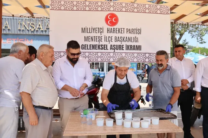 Aşure dağıtımı sırasında açıklamada bulunan Menteşe İlçe Başkanı Kadir Türk, “Birlik ve beraberliğin simgesi olan Muharrem ayında, geleneksel aşure etkinliğimizi halkımızla buluşturmanın mutluluğunu yaşıyoruz. Katılım gösteren tüm hemşehrilerimize ve destek veren teşkilat mensuplarımıza teşekkür ediyorum” dedi.