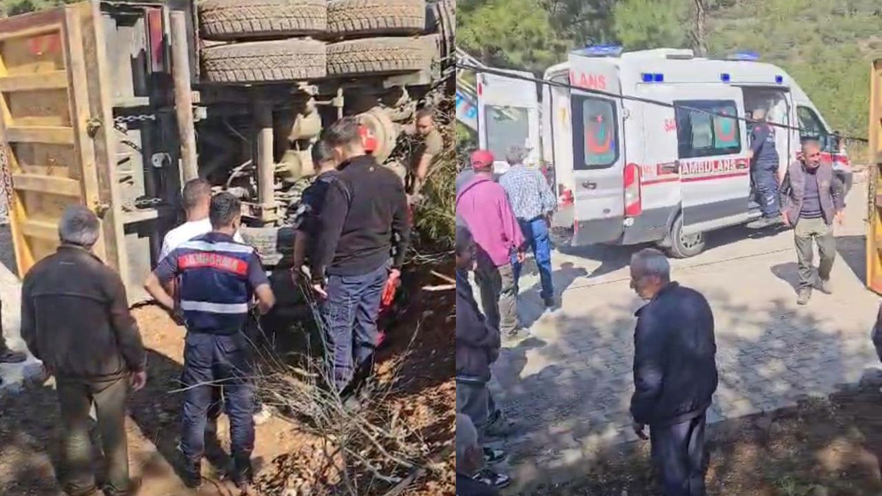 Muğla'nın Menteşe ilçesinde freni patladığı iddia edilen belediye kamyonu kaza yaparken, sürücü Onur K. yaralandı.