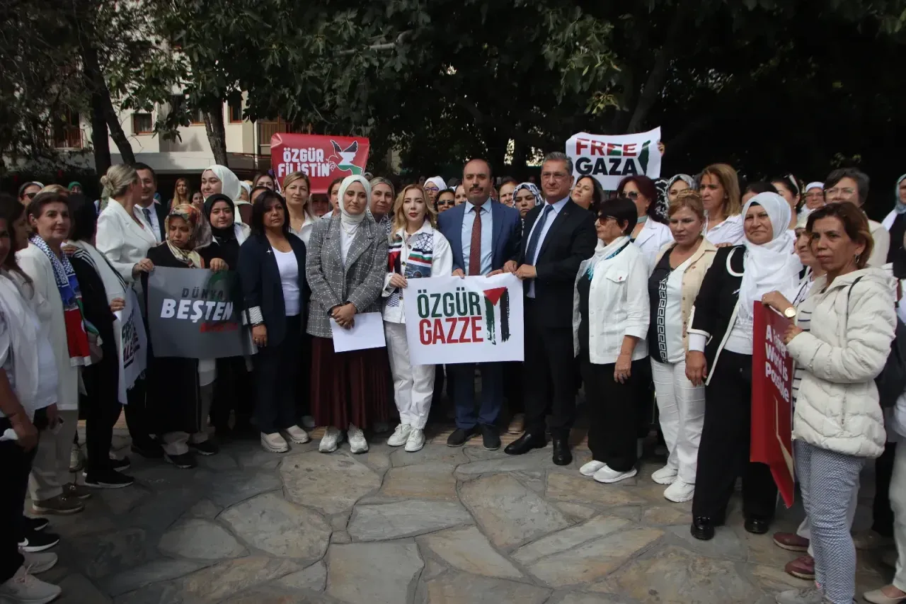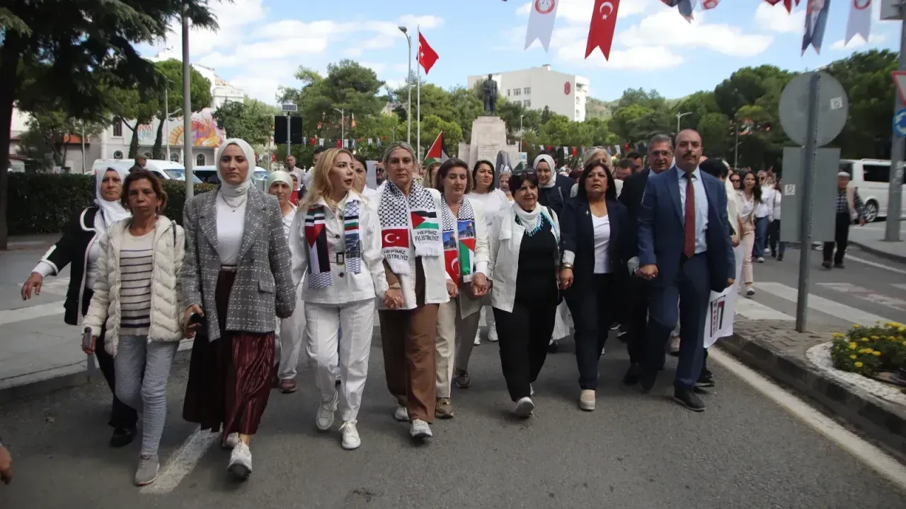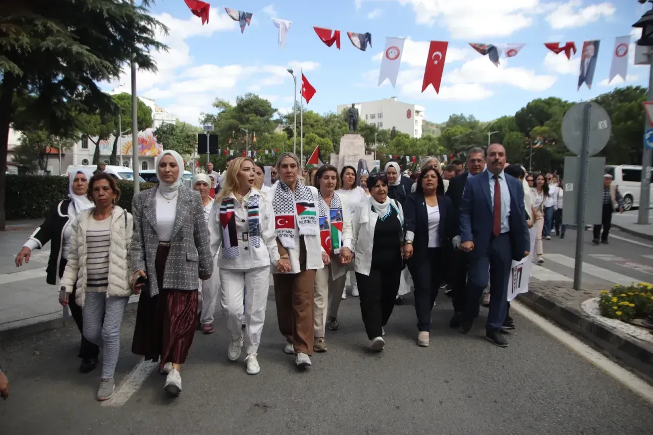 Muğla’nın Menteşe ilçesinde kadınlar, Gazze’de yaşanan insanlık dramına dikkat çekmek amacıyla sessiz bir yürüyüş düzenledi. AK Parti Muğla İl Kadın Kolları Başkanlığı öncülüğünde yapılan etkinlikte slogan atılmadı, katılımcılar el ele vererek “sessiz çığlık zinciri” oluşturdu ve Gazze’ye destek mesajı verdi.