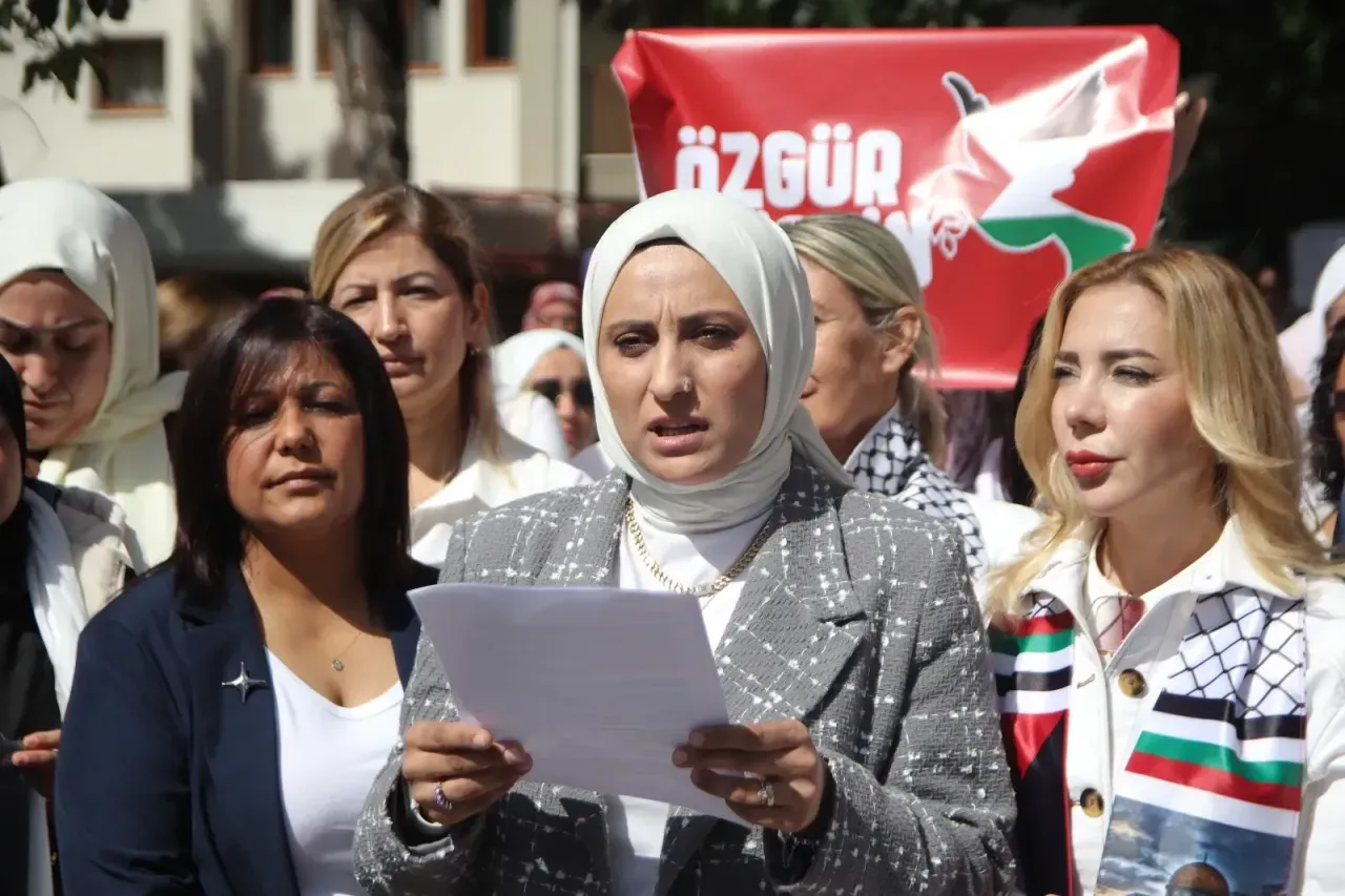“İşte bugün o umut sözleri de bu meydanda yankılanıyor. Nehirden denize özgür Filistin. Biz bugün bütün kimliklerimizden sıyrılarak, sadece kadın kimliğimizle buradayız. Çünkü bu mesele ne dünyadaki rollerimizle, ne taşıdığımız unvanlarla, ne de sahip olduklarımızla ilgilidir; bu mesele insanlık meselesidir. Bugün Türkiye’den tüm dünyaya tek bir şey söylüyoruz. Barış kadınla mümkündür. Slogan atmıyoruz, vicdanlarımızla haykırıyoruz. Çünkü bazı sessizlikler vardır ki, arşı yere indirir. Bizim sessizliğimiz, Gazze’nin en gür çığlığı olacaktır.”