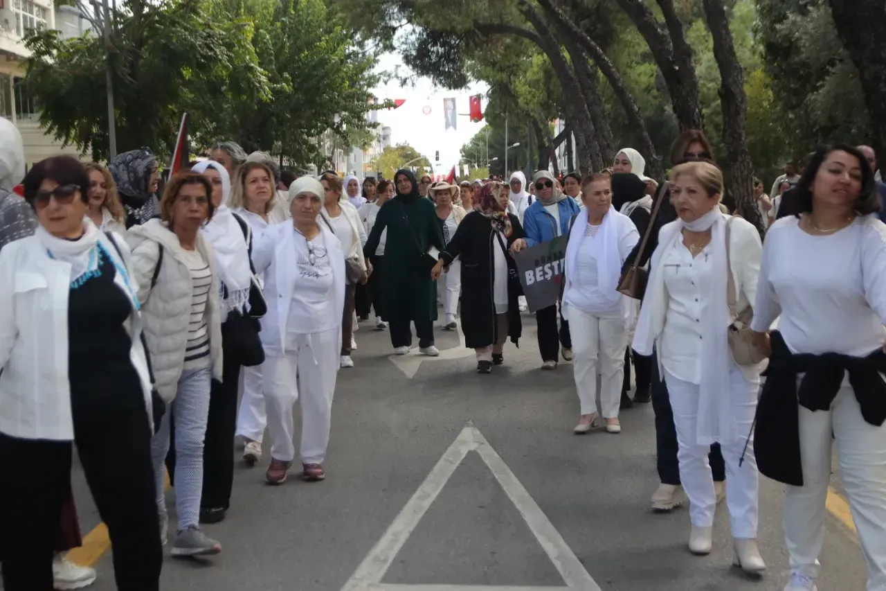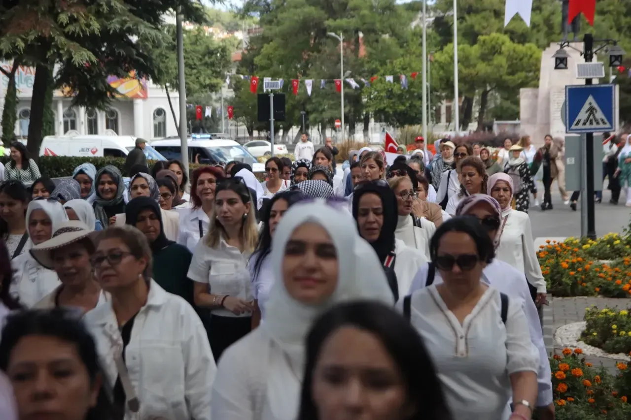 Menteşe’deki yürüyüş öncesi düzenlenen basın açıklamasına, eski AK Parti Muğla İl Başkanı Haluk Laçin, AK Parti MKYK Üyesi Yelda Erol Gökcan, AK Parti Menteşe İlçe Başkanı Mustafa Algan, eski İlçe Başkanı Eray Çiçek ve çok sayıda kadın katıldı.
