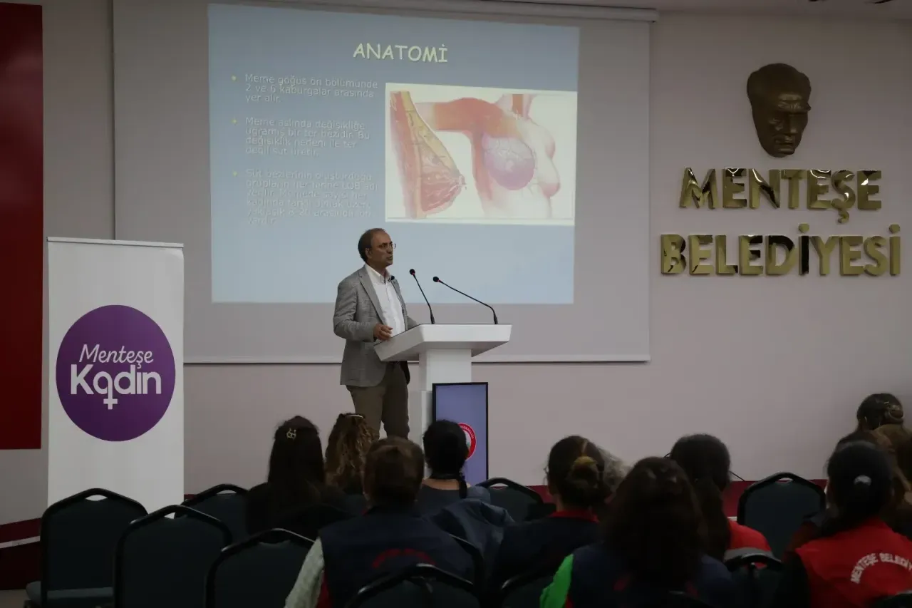 Menteşe Belediyesi, Muğla Tabip Odası ve Menteşe Kadın Platformu tarafından 1-31 Ekim Meme Kanseri Farkındalık Ayı etkinlikleri kapsamında düzenlenen seminer, yoğun katılımla gerçekleşti. Kadınlara yönelik düzenlenen programda, hastalığın erken teşhis edilmesinin hayati önem taşıdığı vurgulandı.