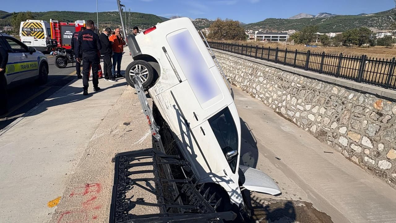 Muğla'nın Menteşe ilçesinde meydana gelen trafik kazasında araçlardan biri çarpmanın etkisiyle dereye uçtu. Araç sürücüsünün emniyet kemerinin takılı olması hayatını kurtardı.