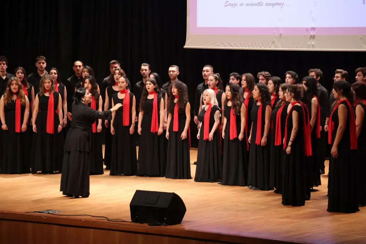Konuşmaların ardından Eğitim Fakültesi Güzel Sanatlar Eğitimi Bölümü Müzik Eğitim Anabilim Dili Çoksesli korosu tarafından çoksesli koro dinletisi yapıldı.