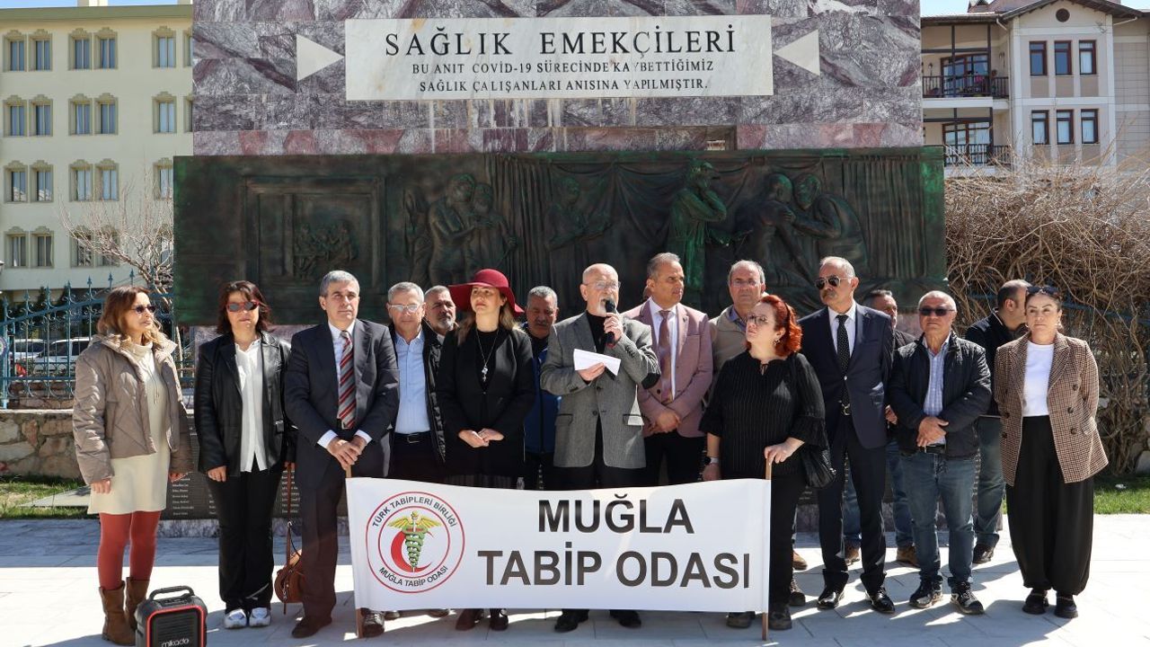 Basın açıklamasını Muğla Tabip Odası Başkanı Çetin Erdolu yaptı.
