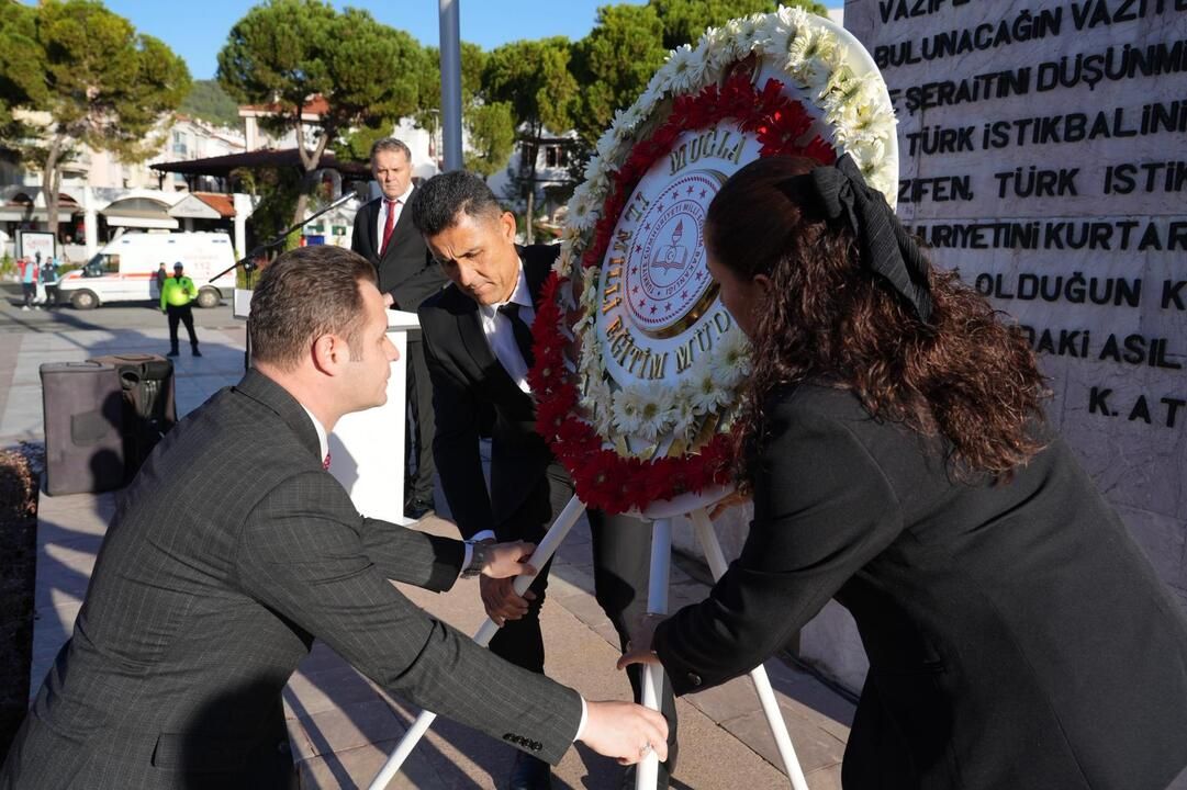 Muğla’nın Menteşe ilçesinde, 24 Kasım Öğretmenler Günü kapsamında anlamlı bir tören gerçekleştirildi. Muğla İl Millî Eğitim Müdürlüğü tarafından düzenlenen programda, Cumhuriyet Meydanı’ndaki Atatürk Anıtı’na çelenk sunuldu.