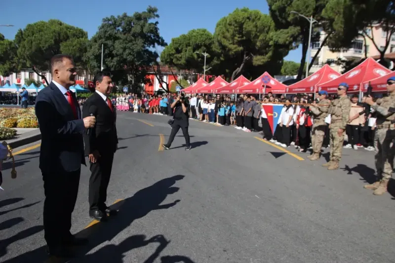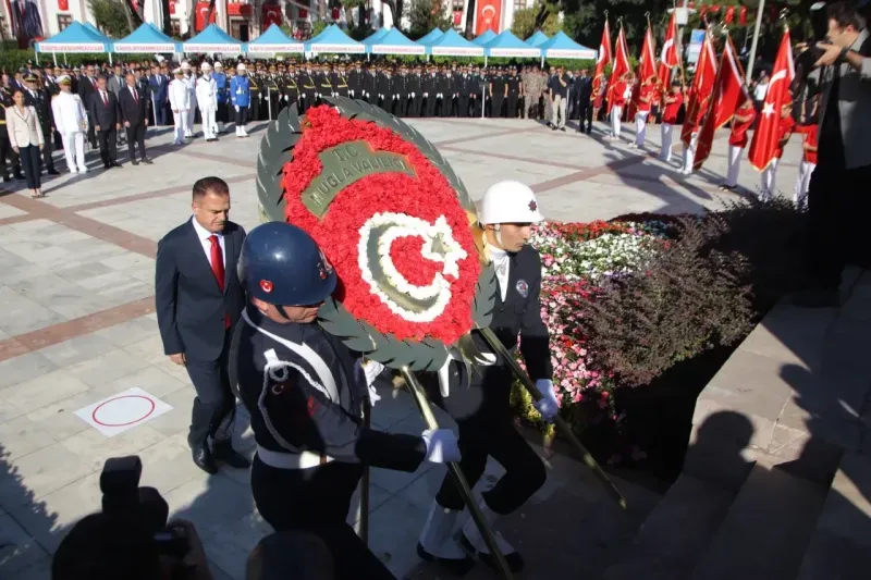 Program, Muğla Valiliği, Garnizon Komutanlığı ve Muğla Büyükşehir Belediyesi’nin Atatürk Anıtı’na çelenk sunmasıyla başladı.