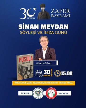 30 Ağustos kutlamalarının kültürel boyutunda ise tarihçi-yazar Sinan Meydan Muğlalılarla buluşacak. Türkan Saylan Çağdaş Yaşam Merkezi Seminer Salonu’nda saat 15.00’te başlayacak etkinlikte Meydan, “Yakın Tarih için Pusula” kitabını imzalayacak ve bir söyleşi gerçekleştirecek. Katılım ücretsiz olacak.