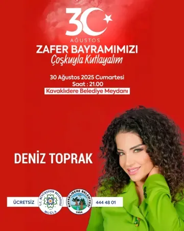 Kavaklıdere Belediyesi, Zafer Bayramı için Deniz Toprak konseri düzenliyor. Belediye Meydanı’ndaki etkinlik ücretsiz olacak ve tüm vatandaşlar davet edildi.