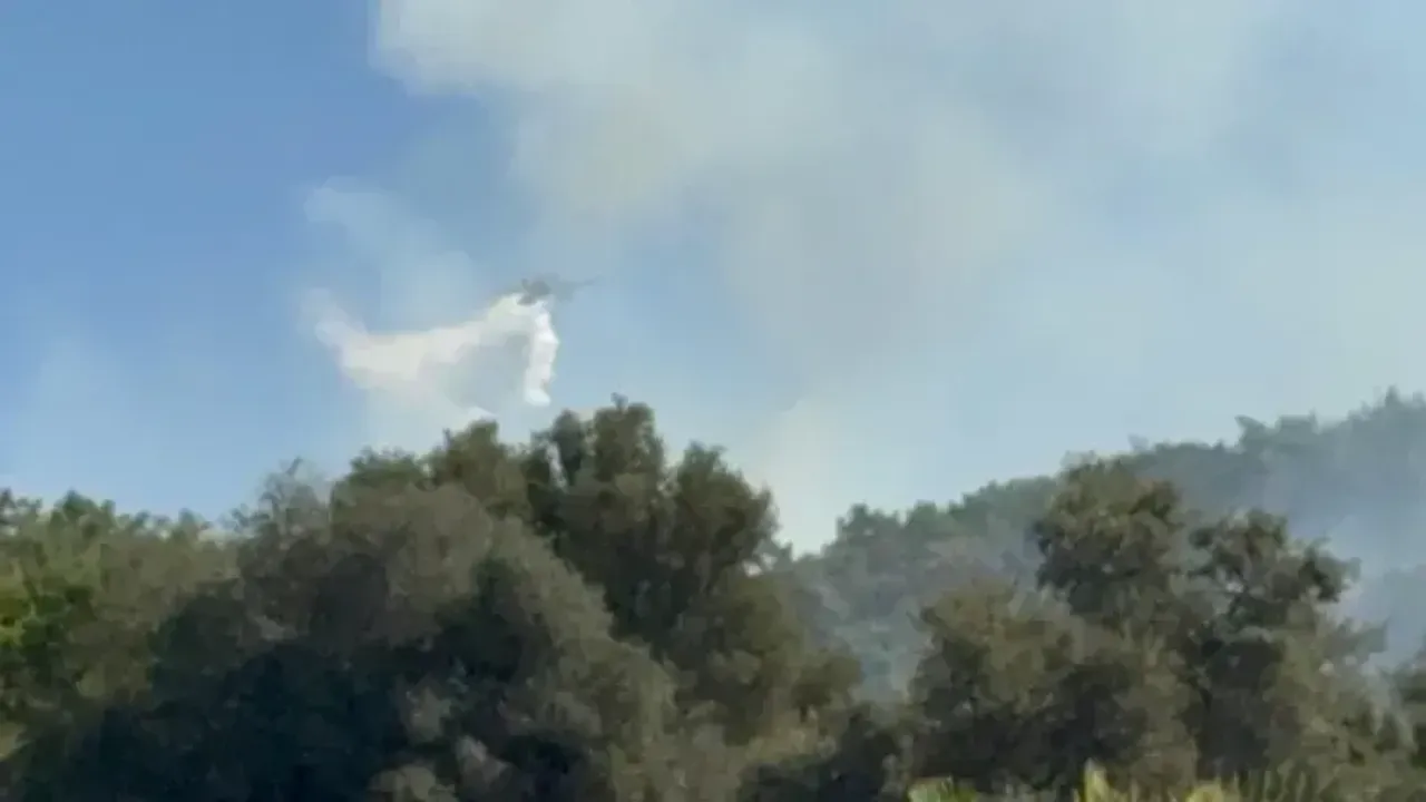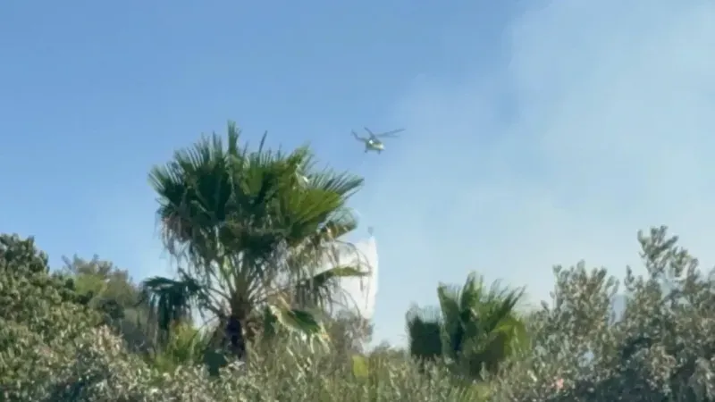 11 arazöz, 5 su tankeri, 3 helikopter, 2 uçak ve 80 personel ile müdahale sürüyor.