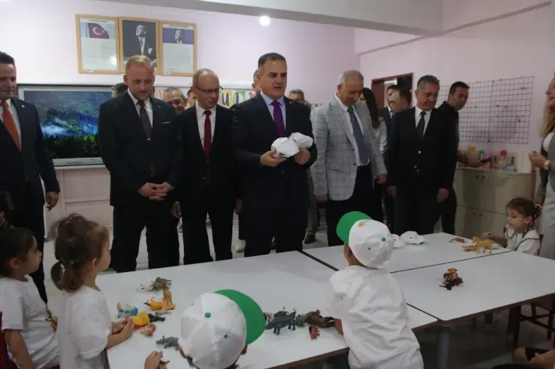 Protokol üyeleri ve öğrenciler, 2025-2026 eğitim-öğretim yılının ilk ders zilini birlikte çaldı. Törenin ardından Muğla Valisi İdris Akbıyık, protokol üyeleriyle sınıfları gezerek öğrencilere çeşitli hediyeler dağıttı. Vali Akbıyık, bir sınıfta öğrencilere “Yeşil Vatan” konulu yılın ilk dersini anlattı.