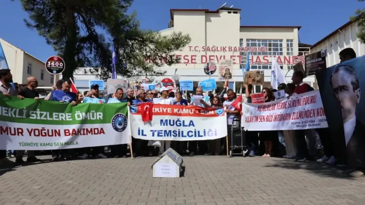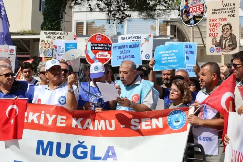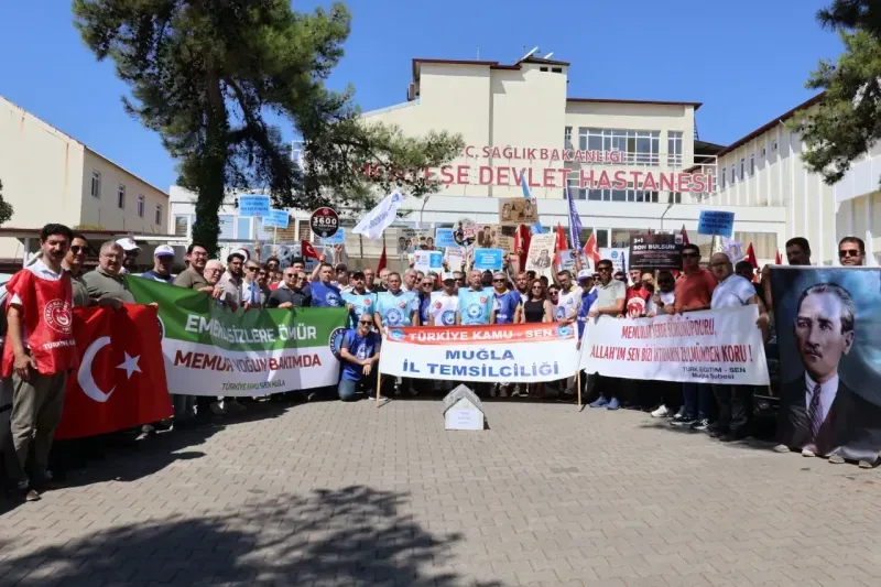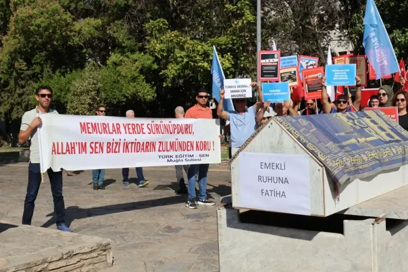 Türkiye Kamu-Sen, memur ve memur emeklilerine teklif edilen zammın yetersiz olduğu gerekçesiyle 81 ilde iş bırakma eylemi düzenledi. Muğla’da gerçekleştirilen eylemde kamu emekçileri, “Emekli ruhuna fatiha” yazılı tabut taşıyarak tepkilerini dile getirdi.