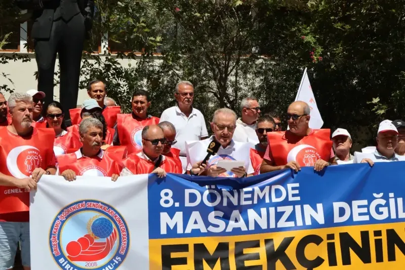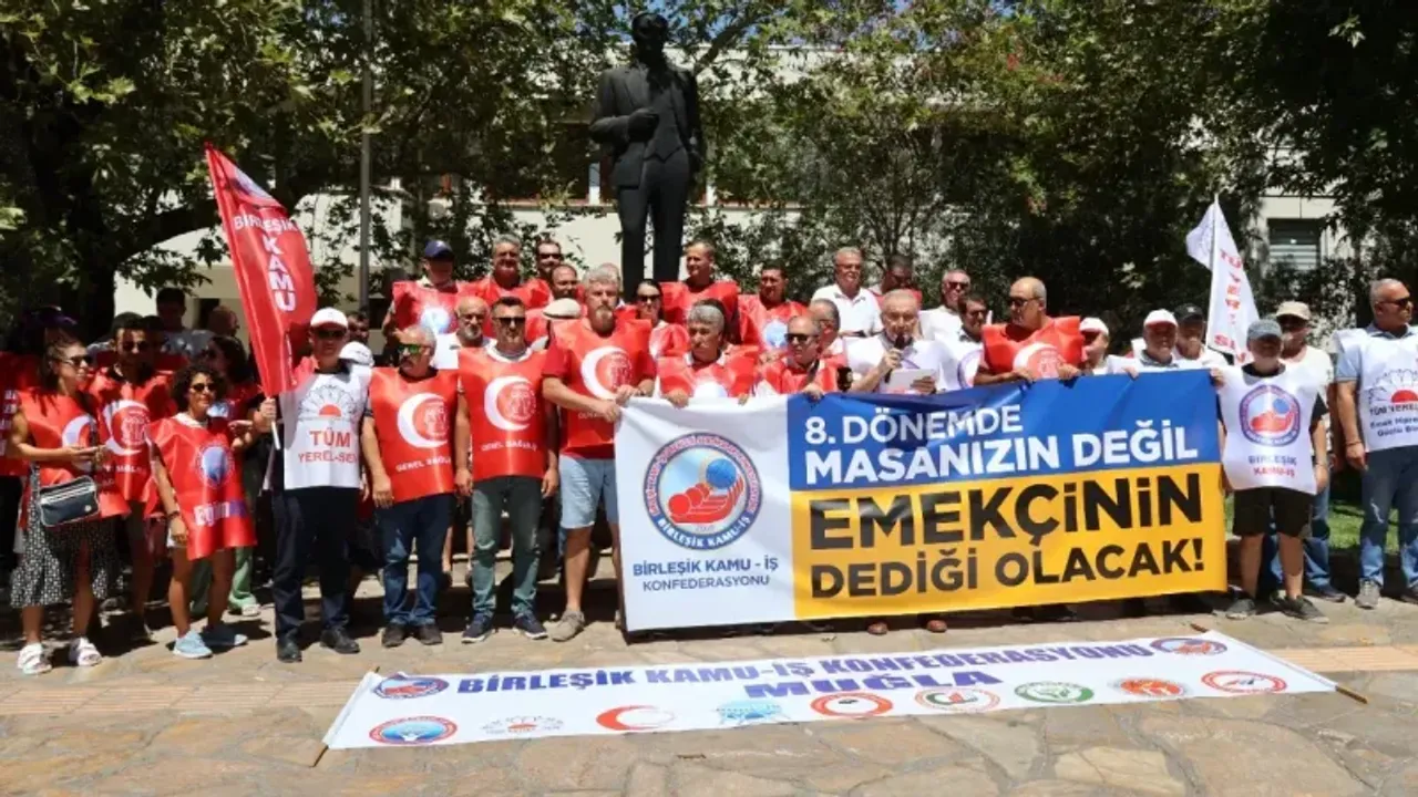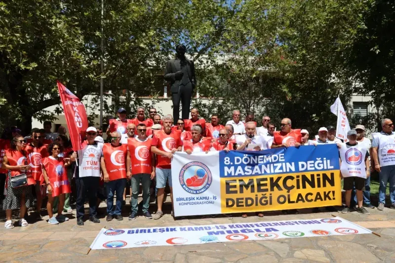 Açıklamayı yapan Birleşik Kamu–İş Muğla Şube Başkanı Özkan Kaya, Çalışma Bakanlığı’nın 8. Dönem Toplu Sözleşme kapsamında sunduğu zam teklifini “sefalet” olarak niteledi. Teklifte 2026’nın ilk altı ayı için yüzde 10, ikinci altı ayı için yüzde 6; 2027’nin her iki yarısı için ise yüzde 4 zam öngörüldüğünü aktaran Kaya, “Bu oranlar, açlık sınırı ile yoksulluk sınırı arasındaki farkı reva görmektir” dedi.
